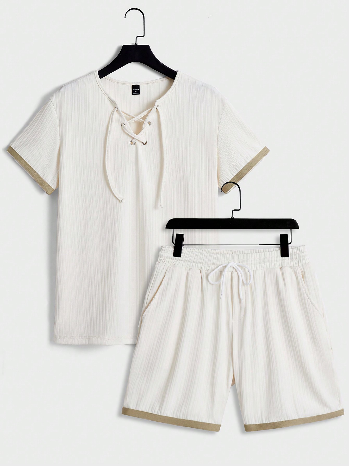 Manfinity KASUA Men Contrast Trim Lace Up Front Tee & Shorts