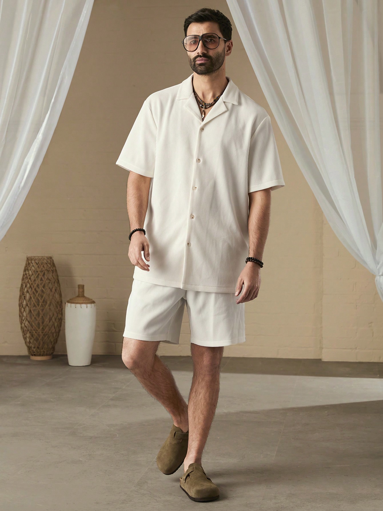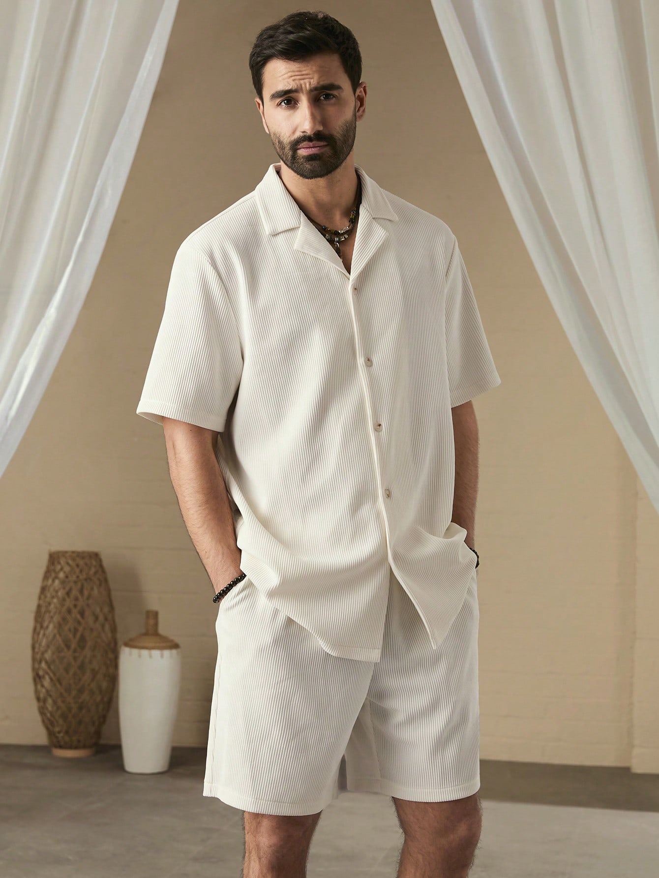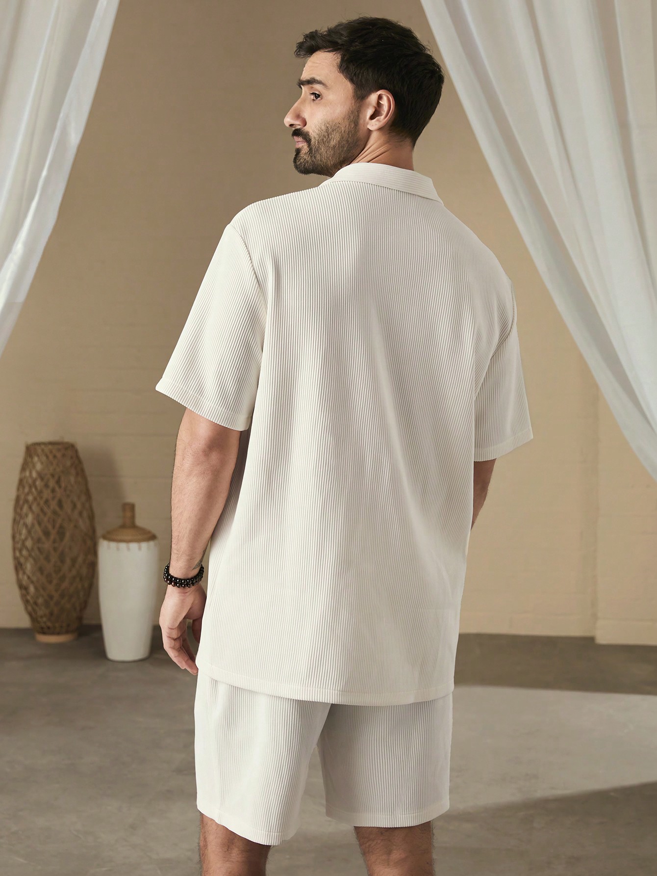Be the first to review “Manfinity KASUA Men Simple Solid Color Short Sleeve Shirt And Shorts Set”