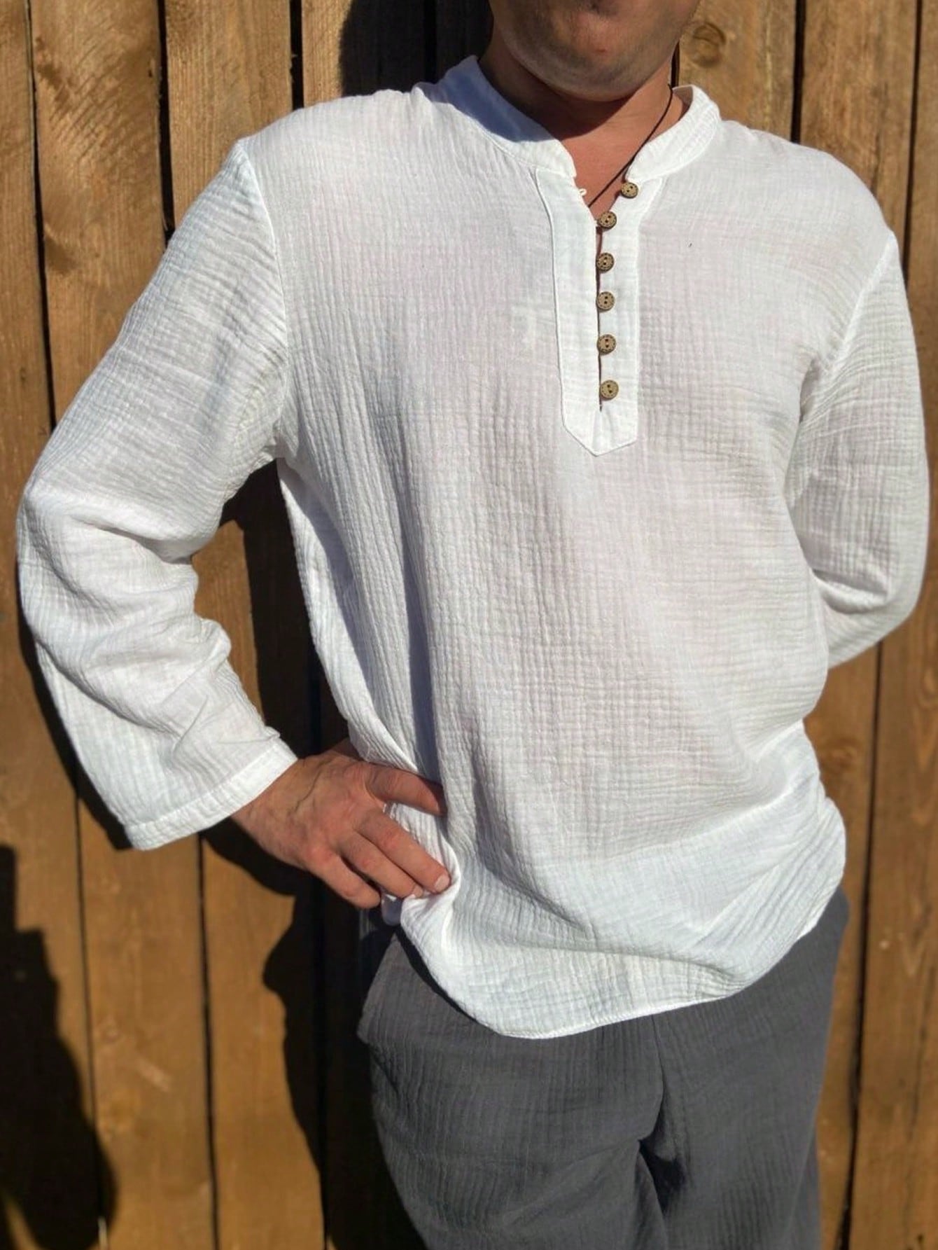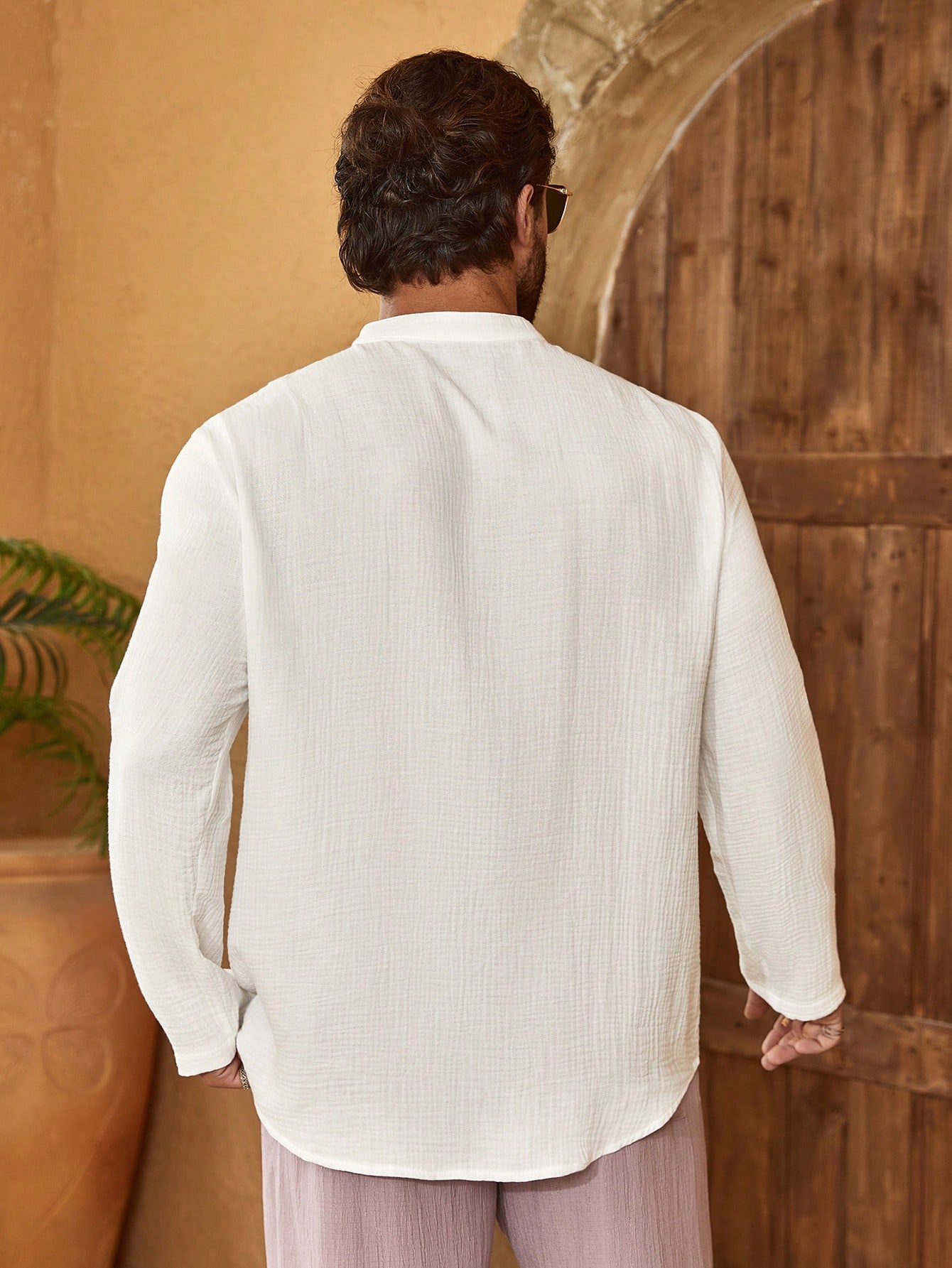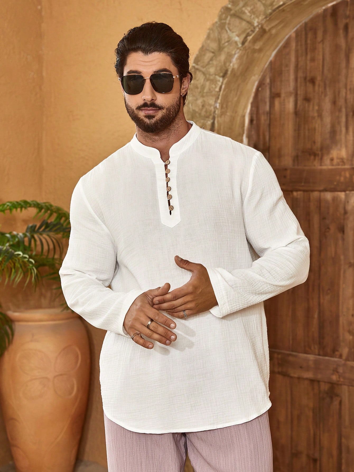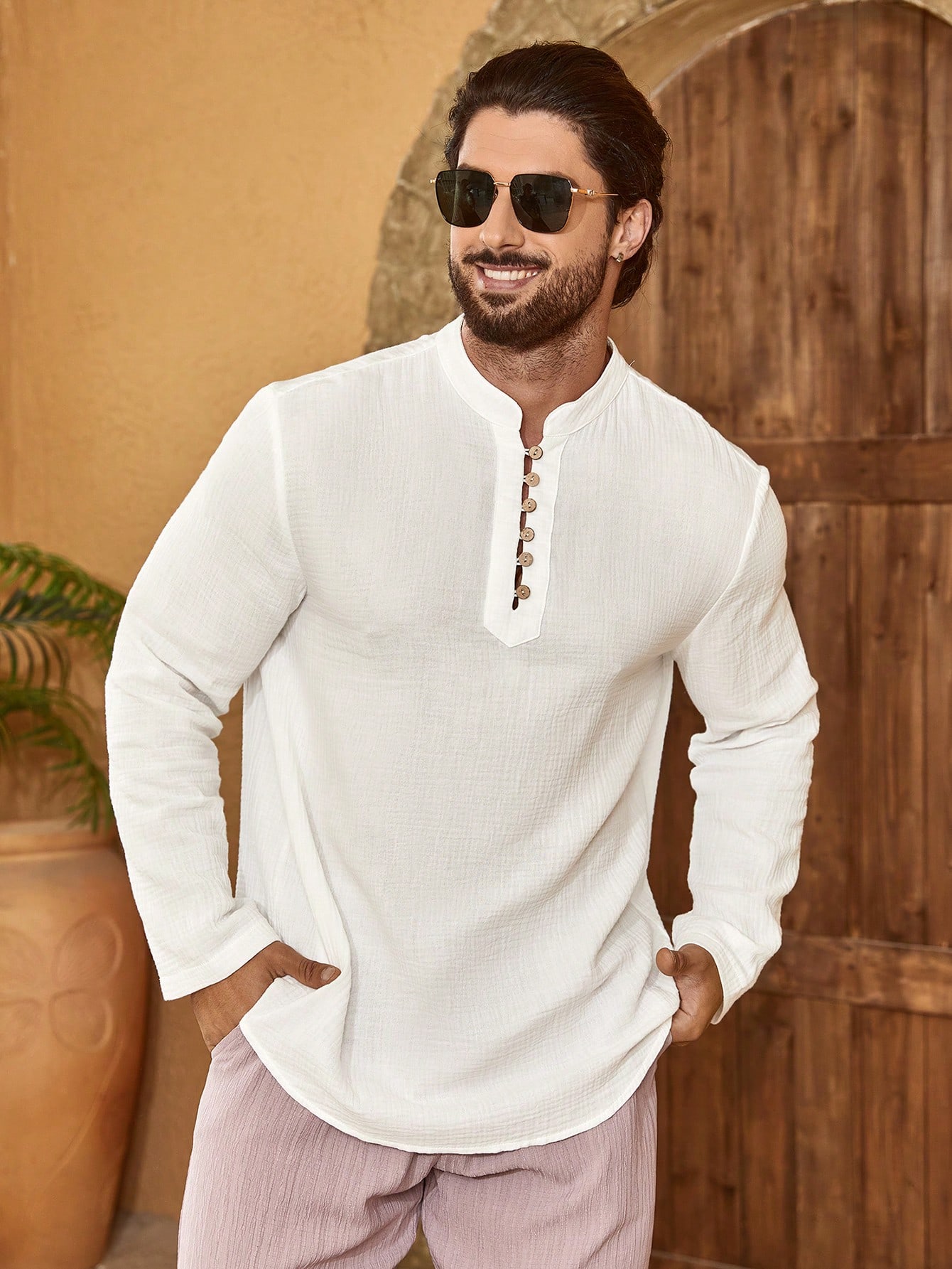Manfinity KASUA Men??S Button Front Half-Placket Long Sleeve Shirt