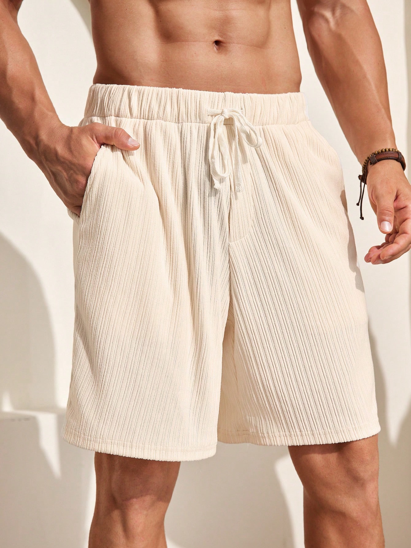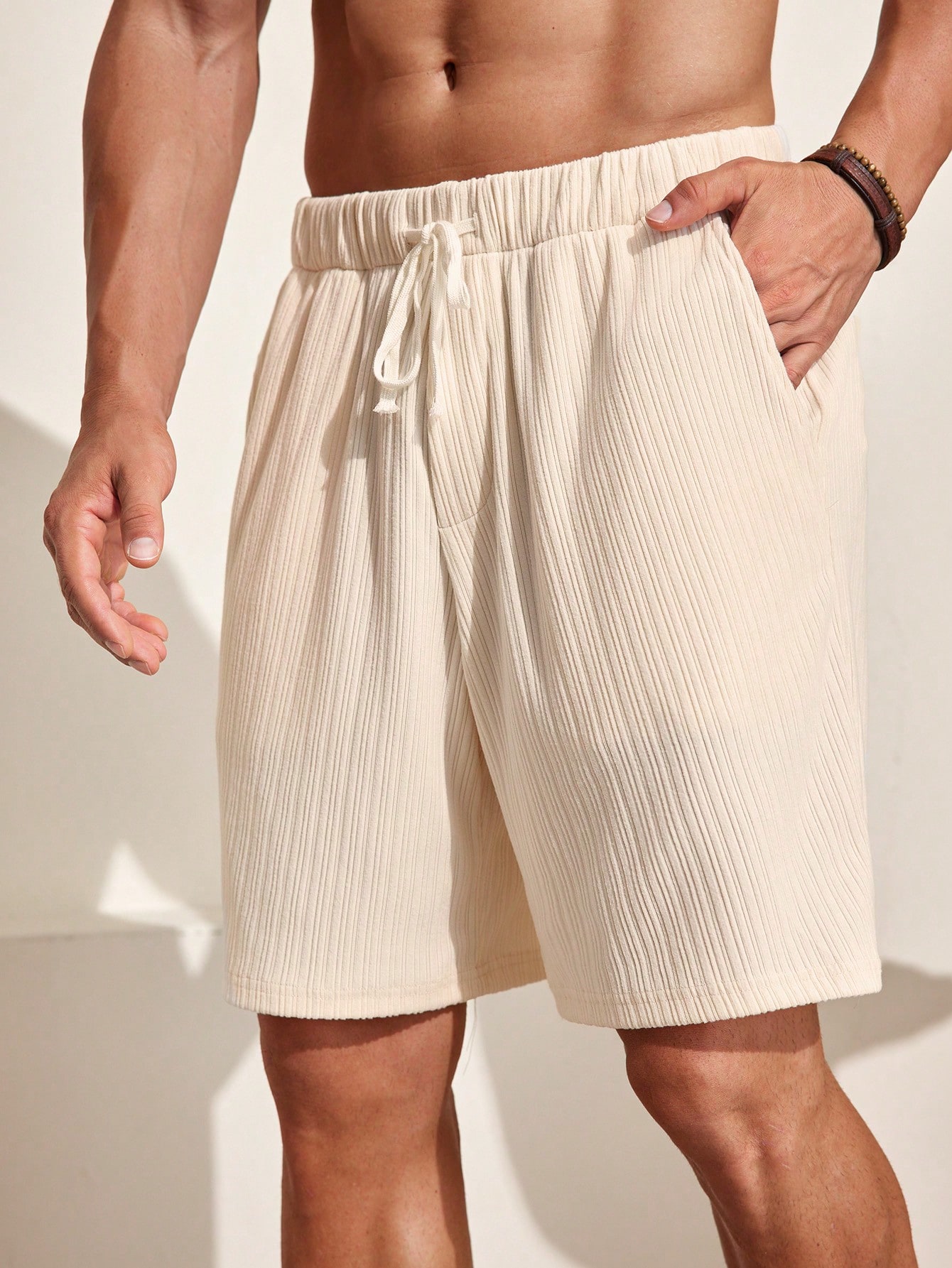 Manfinity KASUA Men??s Irregular Pit Soft Comfortable Breathable Knitted Shorts