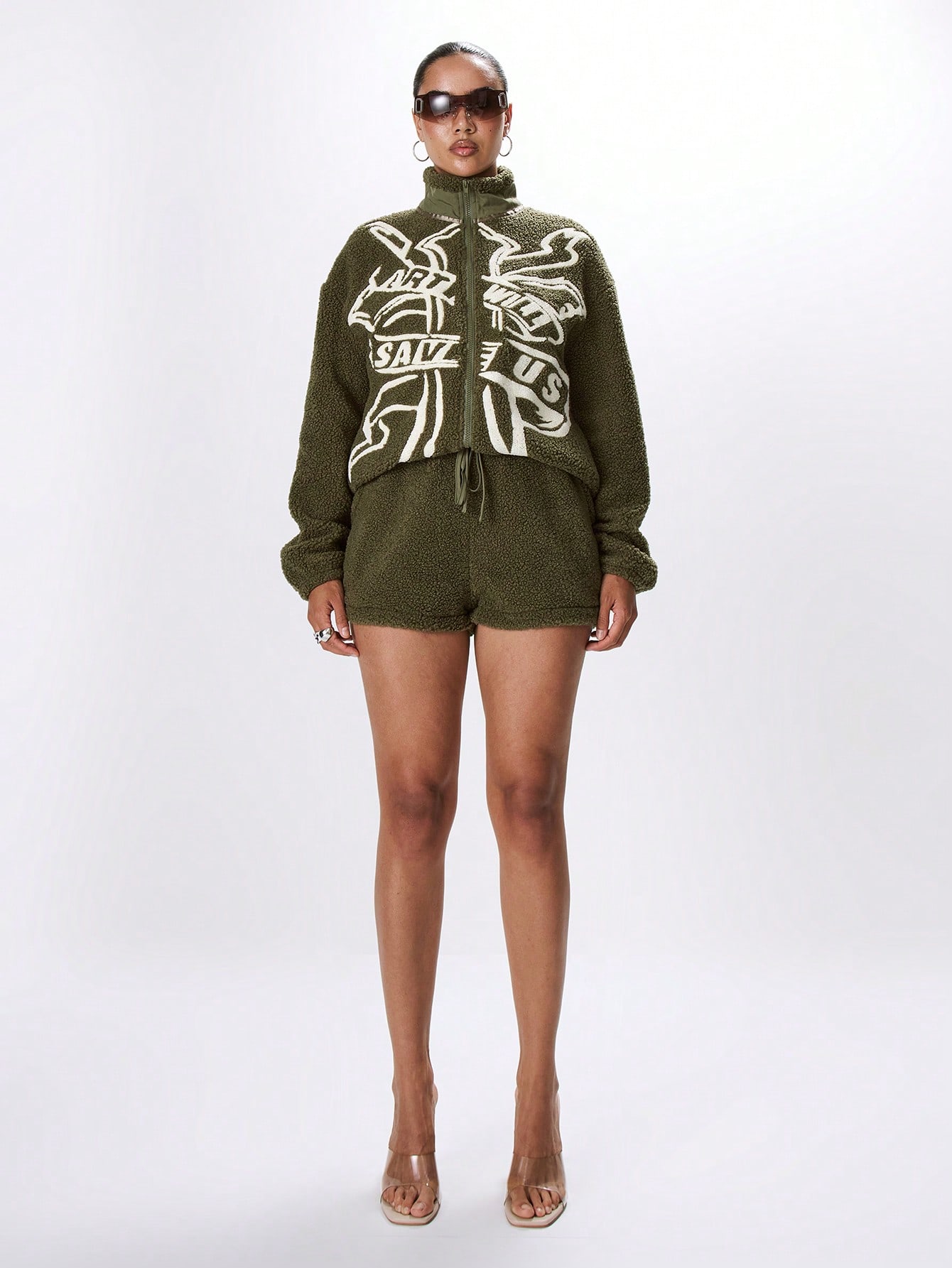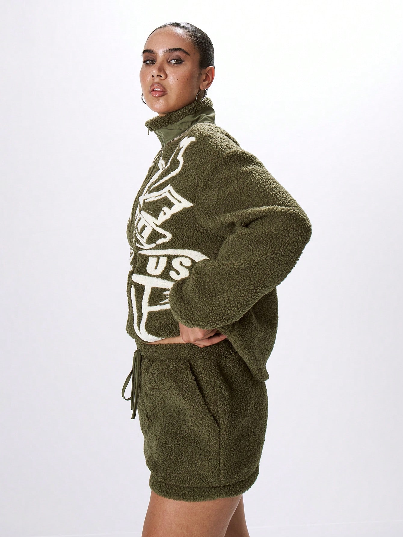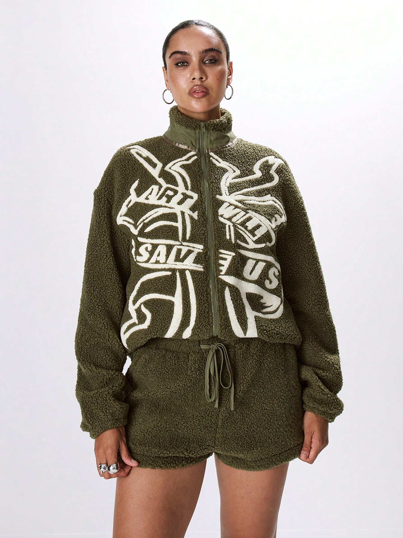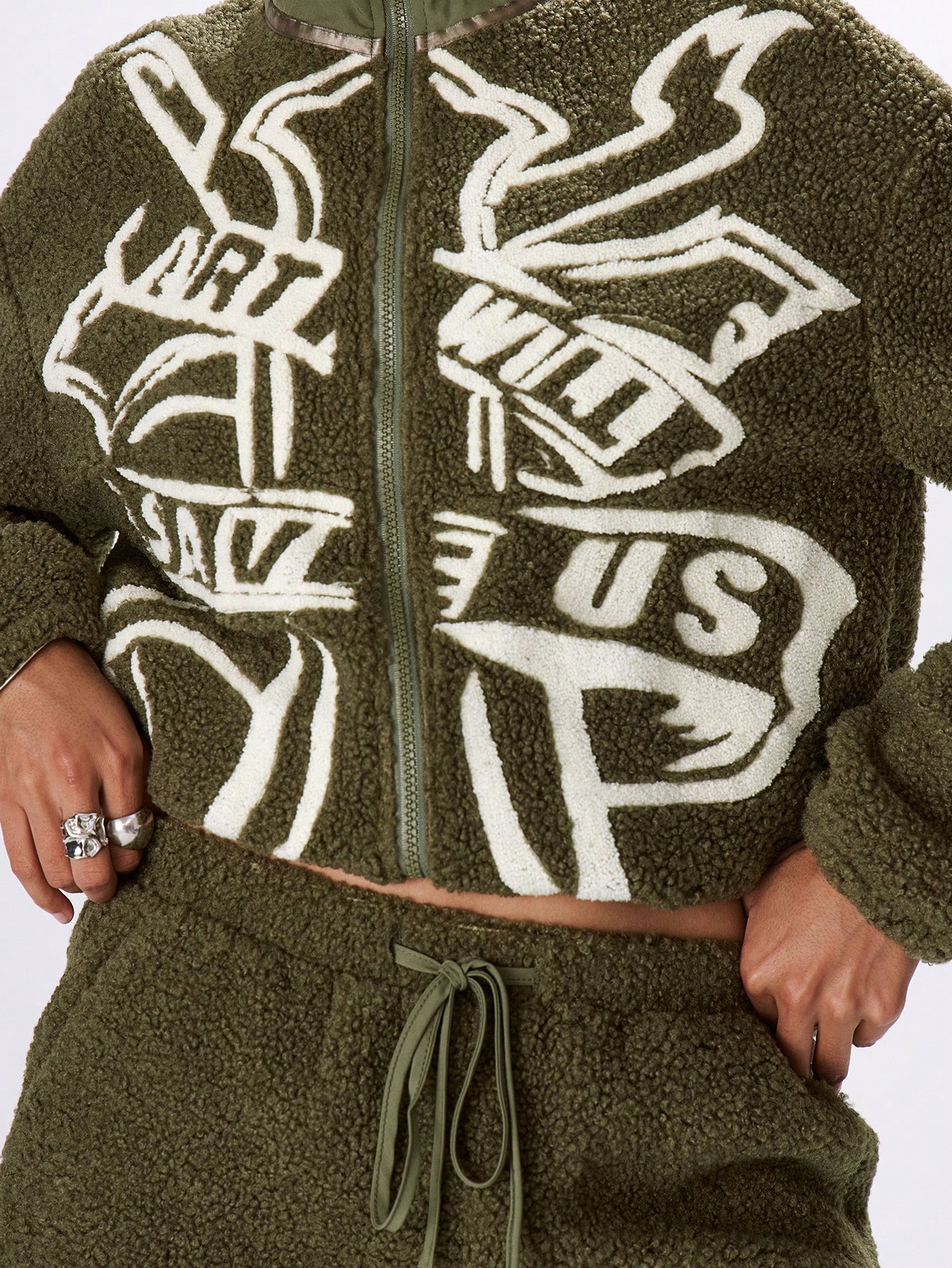 MUSERA Fluffy Slogan Loose Fit Fleece Coat