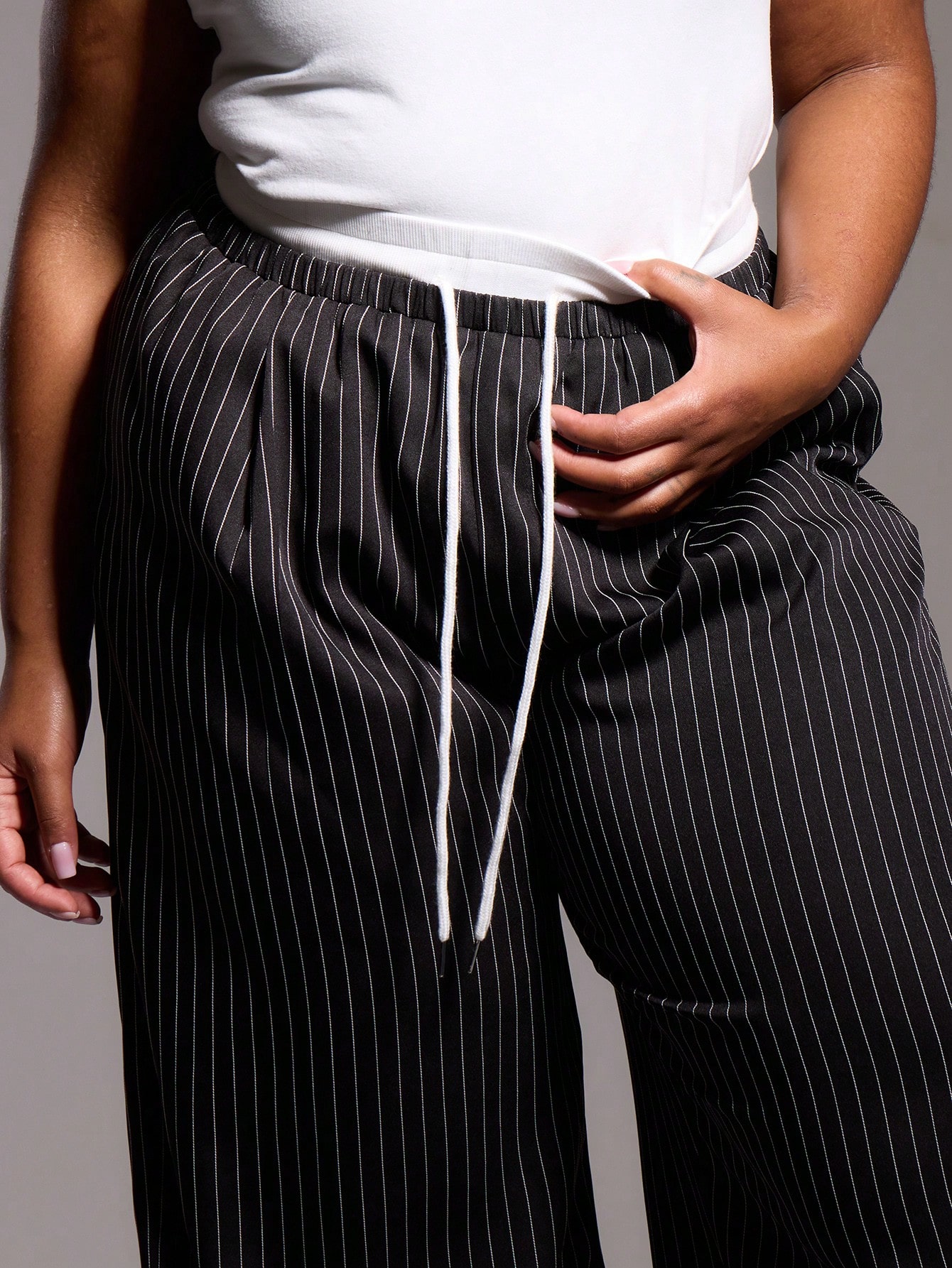 MUSERA Plus Size Woven Pinstripe Drawstring Waist Trousers
