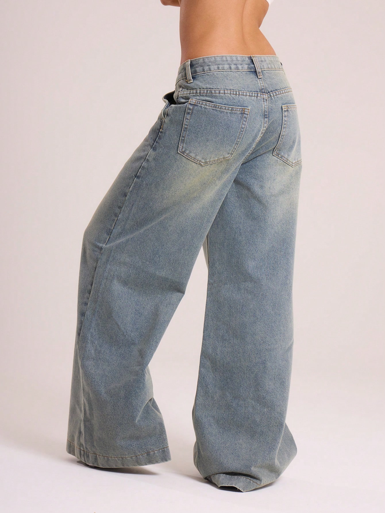 MUSERA Wash Vintage Denim Baggy Oversized Knee Darts Jean
